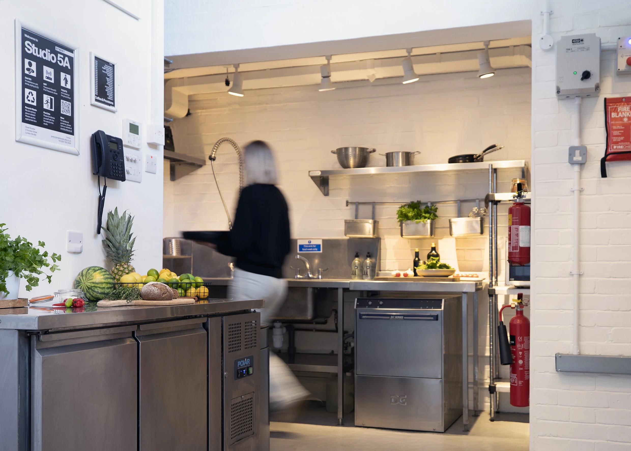 Studios 5 and 5A combine to make a great shoot space and working kitchen ideal for food shoots and events. A versatile ground floor space with a three-metre shoot wall with a fully equipped shoot kitchen benefiting from North and East facing windows with the option of full blackout.